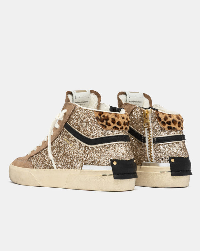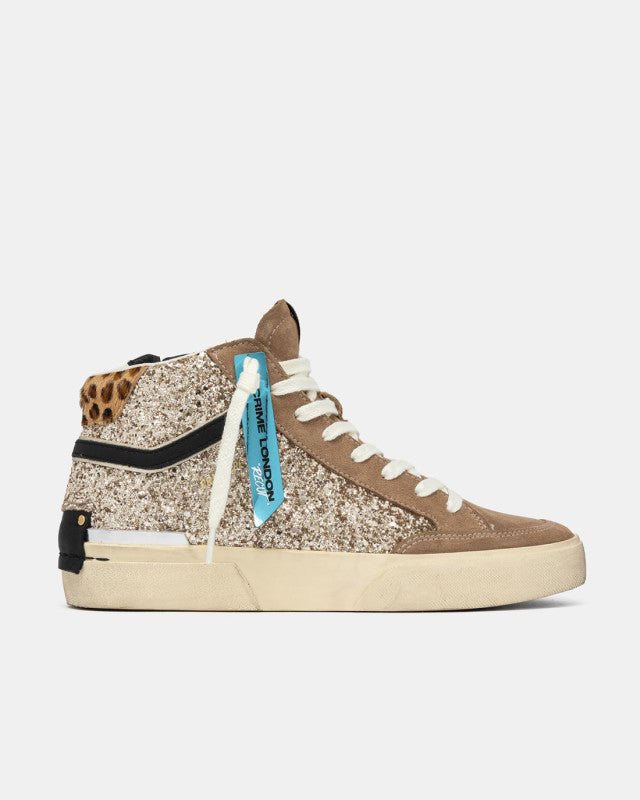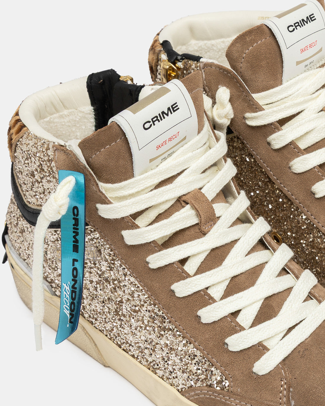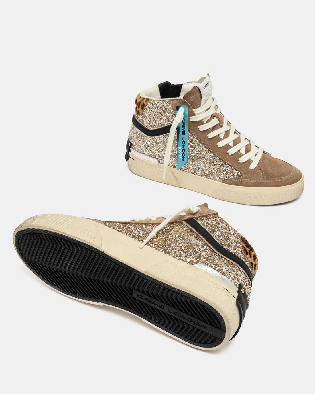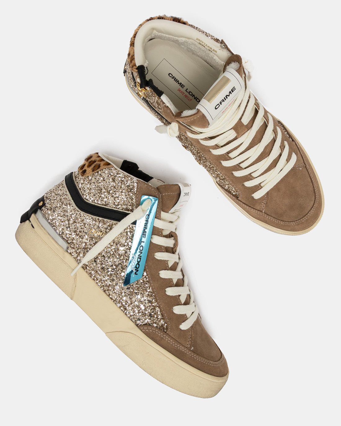 La sneaker alta Crime London - Recut High unisce eleganza e praticità con la combinazione di camoscio e dettagli glitter. Dotata di una cerniera laterale, garantisce una calzata agevole, mentre il plantare estraibile assicura comfort personalizzato e facilità di pulizia. Perfetta per chi ricerca uno stile raffinato senza rinunciare alla comodità.