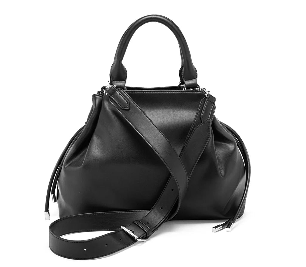 Borsa a mano in eco pelle nera dal design raffinato e versatile. Caratterizzata da due manici robusti e una distintiva targhetta metallica frontale, rappresenta la scelta ideale per chi non scende a compromessi tra eleganza e praticità. La struttura ben definita la rende perfetta per contesti professionali, appuntamenti importanti e occasioni formali. Dimensioni: 31,5x22,5x13 cm. Un accessorio senza tempo che completa qualsiasi guardaroba con sobria sofisticazione.