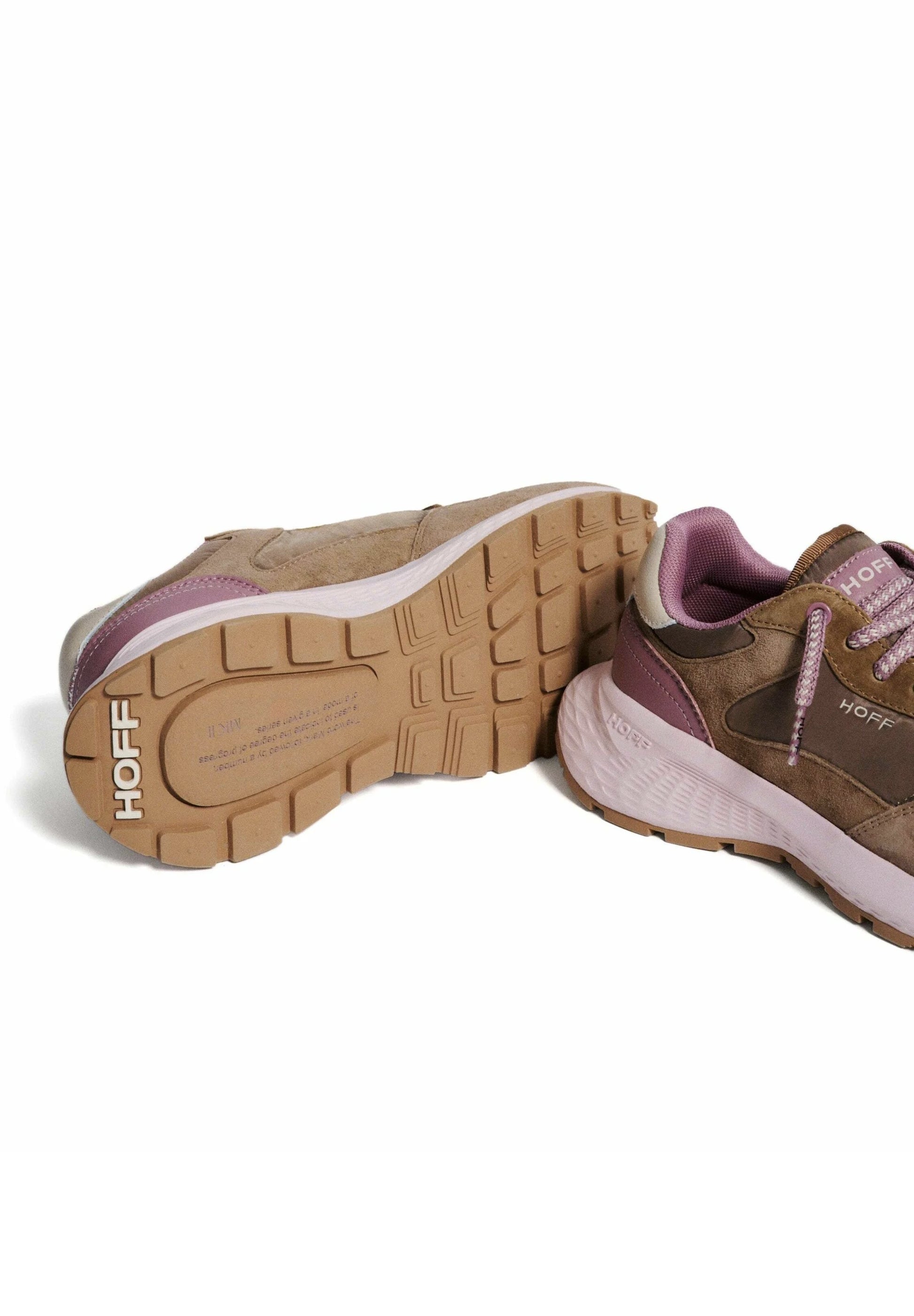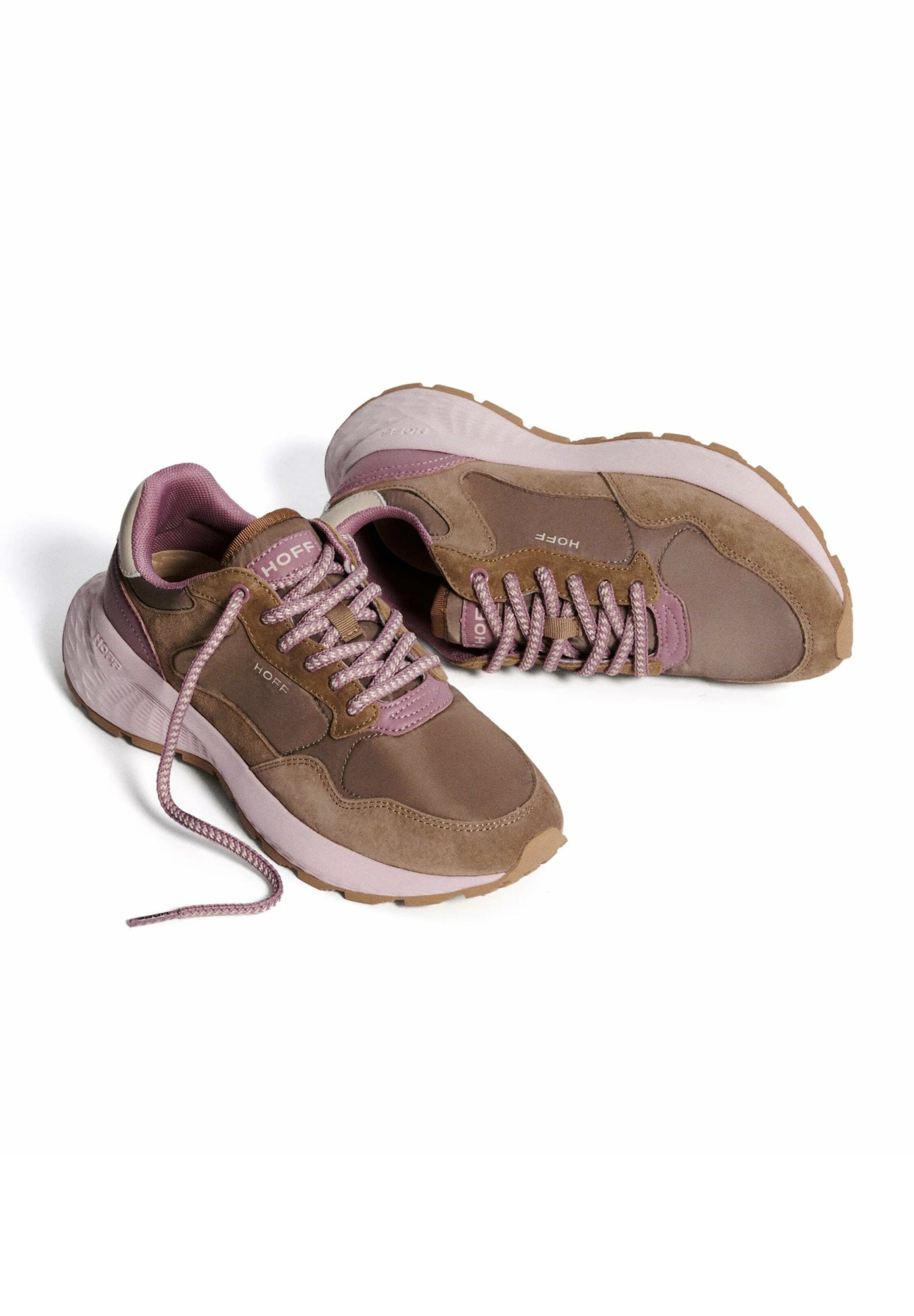 La sneaker donna Hoff - Budapest combina tessuto e camoscio tortora con dettagli nude per un design raffinato. Il sottopiede anatomico estraibile e il plantare in memory interno assicurano un comfort superiore durante tutta la giornata. Il logo sul retro aggiunge un tocco distintivo alla calzatura, ideale per chi cerca stile e funzionalità in un unico prodotto.