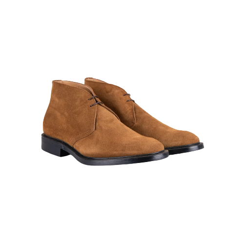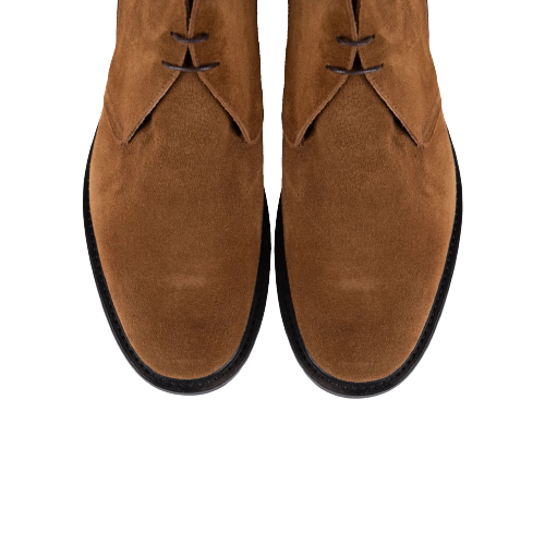 Polacchino in camoscio allacciato color cuoio. Cuciture in tonalità. Altezza rialzo: 3 cm. Calzata regolare e confortevole già dal primo utilizzo. Tomaia e fodera in vera pelle. Suola in gomma.